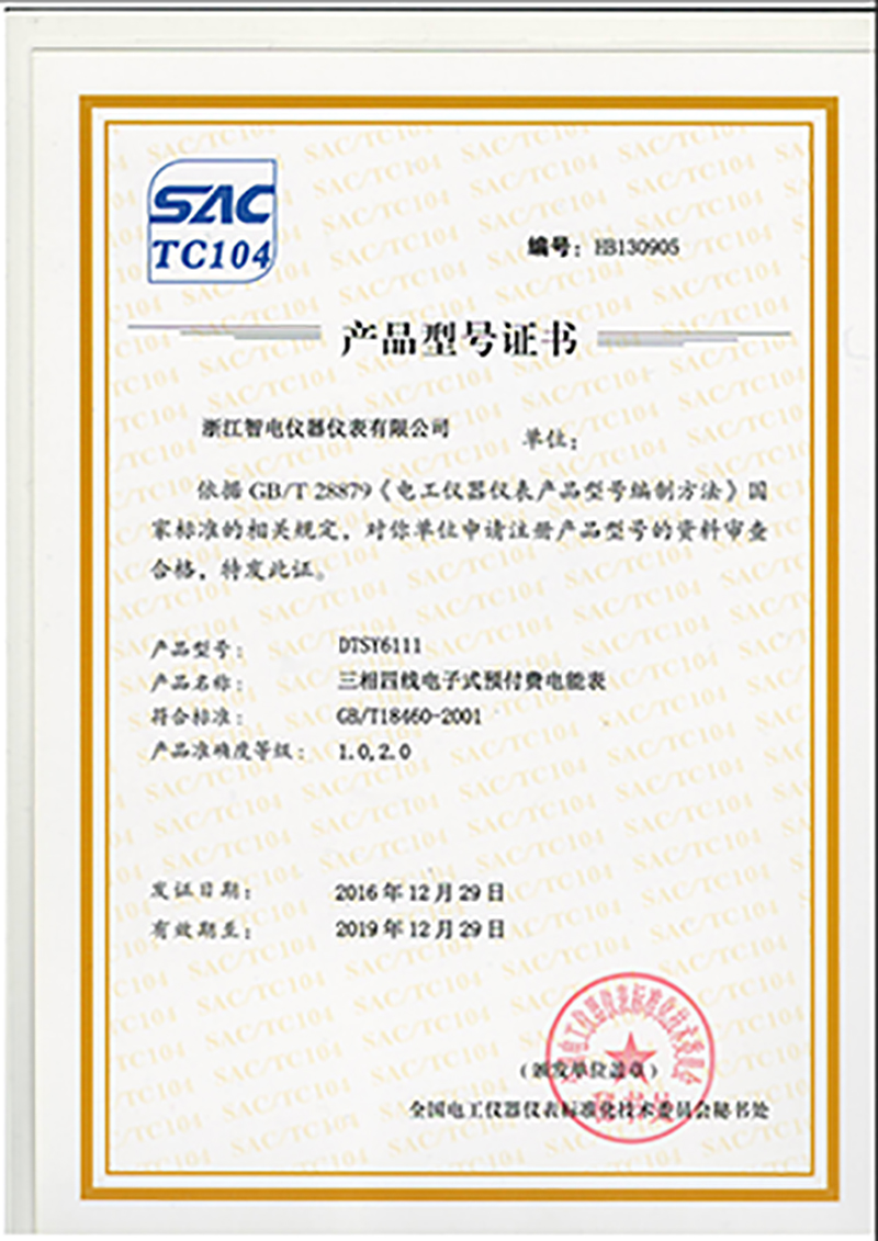 DTSY6111產(chǎn)品型號(hào)證書(shū)