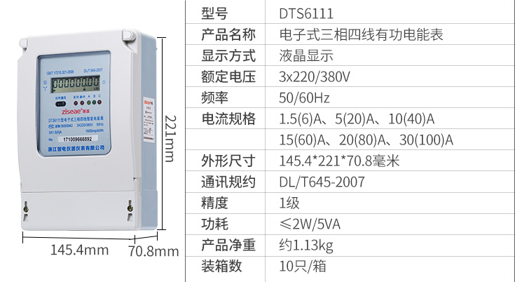 DTS6111三相四線電表 帶RS485 液晶(2007規約)