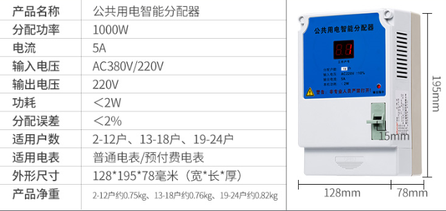 、智盛牌公共用電智能分配器,是將公共樓道用電所消耗的電能(如樓道燈,對講防盜門等),自動分配到各受益用戶的電表中。每天輪流接通一戶電表,開機通電時第一戶電表隨機產生,達到公平分攤電費的目的,本款公共用電智能分配器的特點:外置保險絲更換方便,可實時顯示均分到哪戶